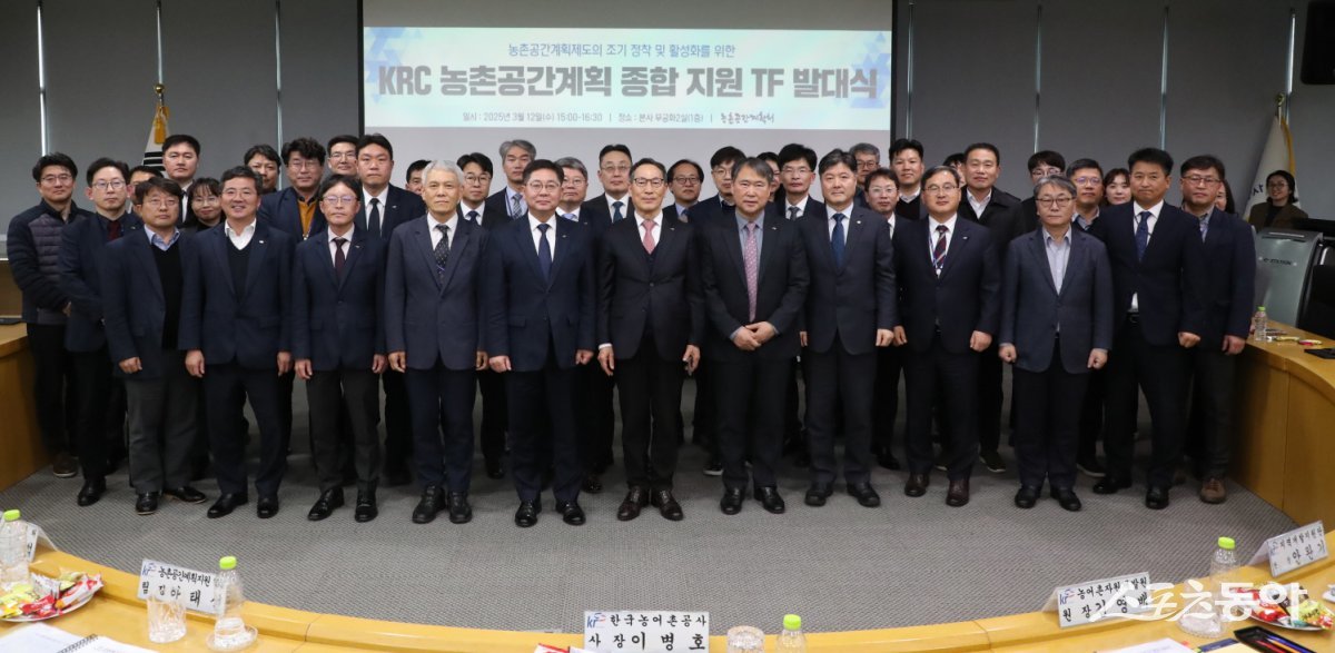 한국농어촌공사가 지난 12일 이병호 한국농어촌공사 사장을 비롯한 60여 명이 참여한 가운데 ‘KRC 농촌공간계획 종합 지원 전담팀(TF) 발대식’을 개최했다.