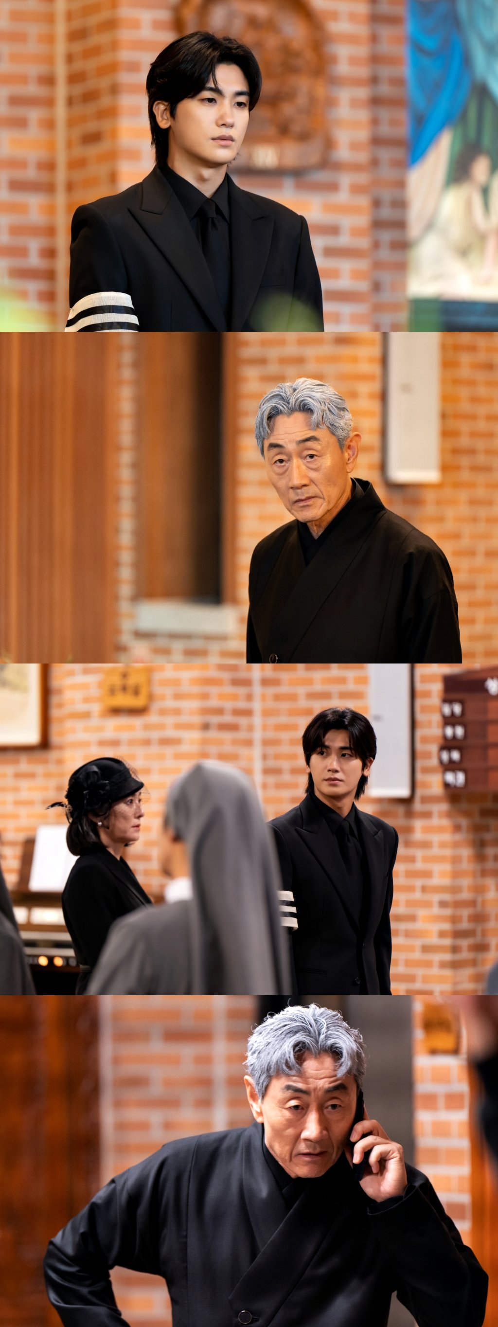 이런 가운데 3월 14일 ‘보물섬’ 제작진이 장례식장에서 마주한 서동주와 염장선의 모습을 공개했다. 사진 속 서동주는 상주로서 장례식 현장을 지키고 있다. 넋이 나간 듯 공허하고 허탈한 서동주의 표정이 안타까움을 자아낸다. 이어 장례식장에 모습을 드러낸 염장선은 여전히 의심 가득한 눈초리로 서동주를 관찰하고 있다. 서동주가 기억을 찾았는지 확인하고 싶은 것으로 보인다.