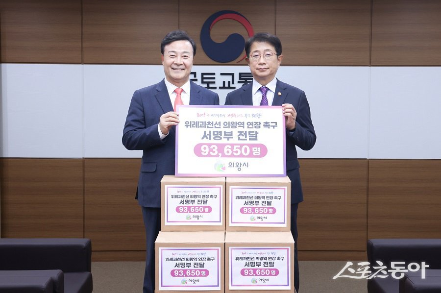 김 시장은 ‘위례~과천선 의왕 연장’을 촉구하는 9만3,650명의 시민 서명부를 박 장관에게 전달하며, 이번 철도망 구축계획에 의왕 연장이 반드시 반영돼야 한다는 시민들의 강한 의지를 전했다.