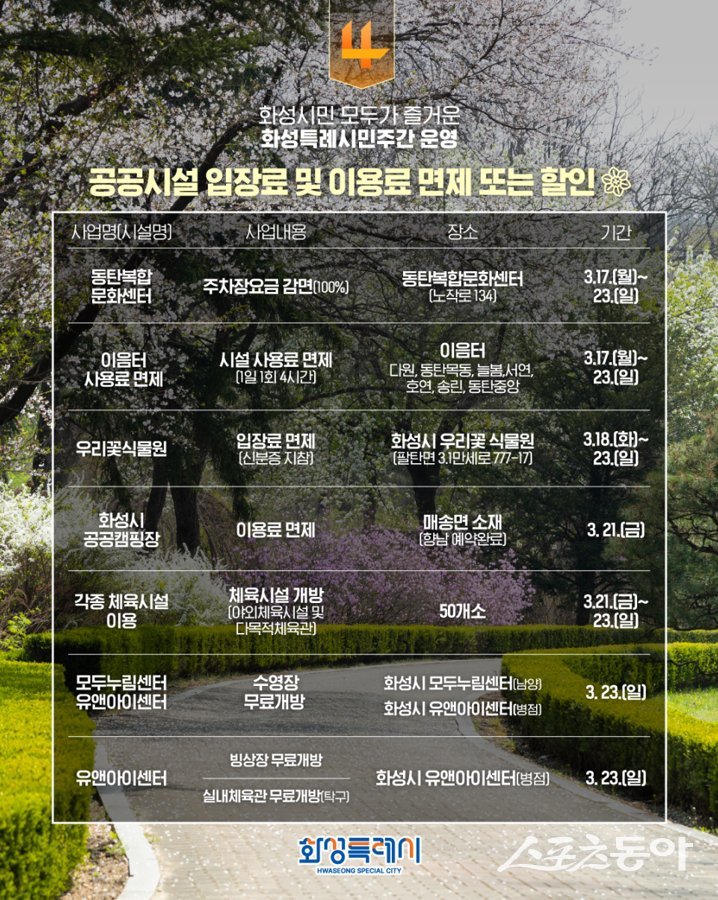 행사와 혜택에 대한 자세한 사항은 화성특례시청 홈페이지 및 공식 SNS, 블로그에서 확인할 수 있다.
