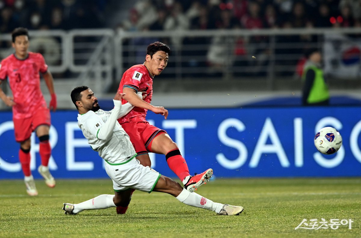 20일 경기도 고양종합운동장에서 ‘2026 북중미 월드컵’ 아시아 3차예선 한국과 오만의 경기에서 한국 황희찬이 골을 넣고 있다. 고양 | 김민성 기자 marineboy@donga.com