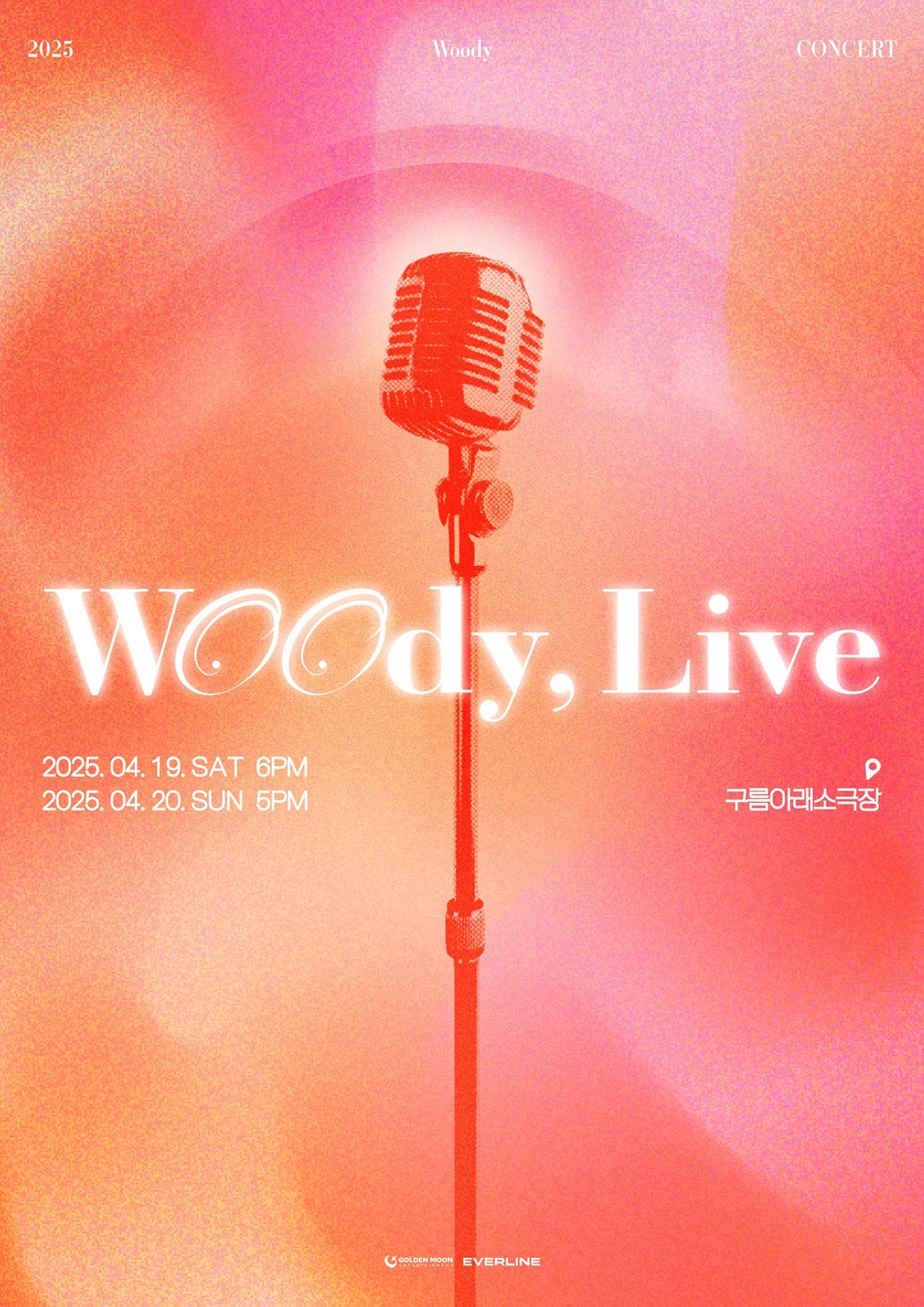 우디는 오는 4월 19일과 20일 양일간 서울 마포구 구름아래소극장에서 2025 단독 콘서트 ‘Woody, Live’ (우디, 라이브)를 개최한다.