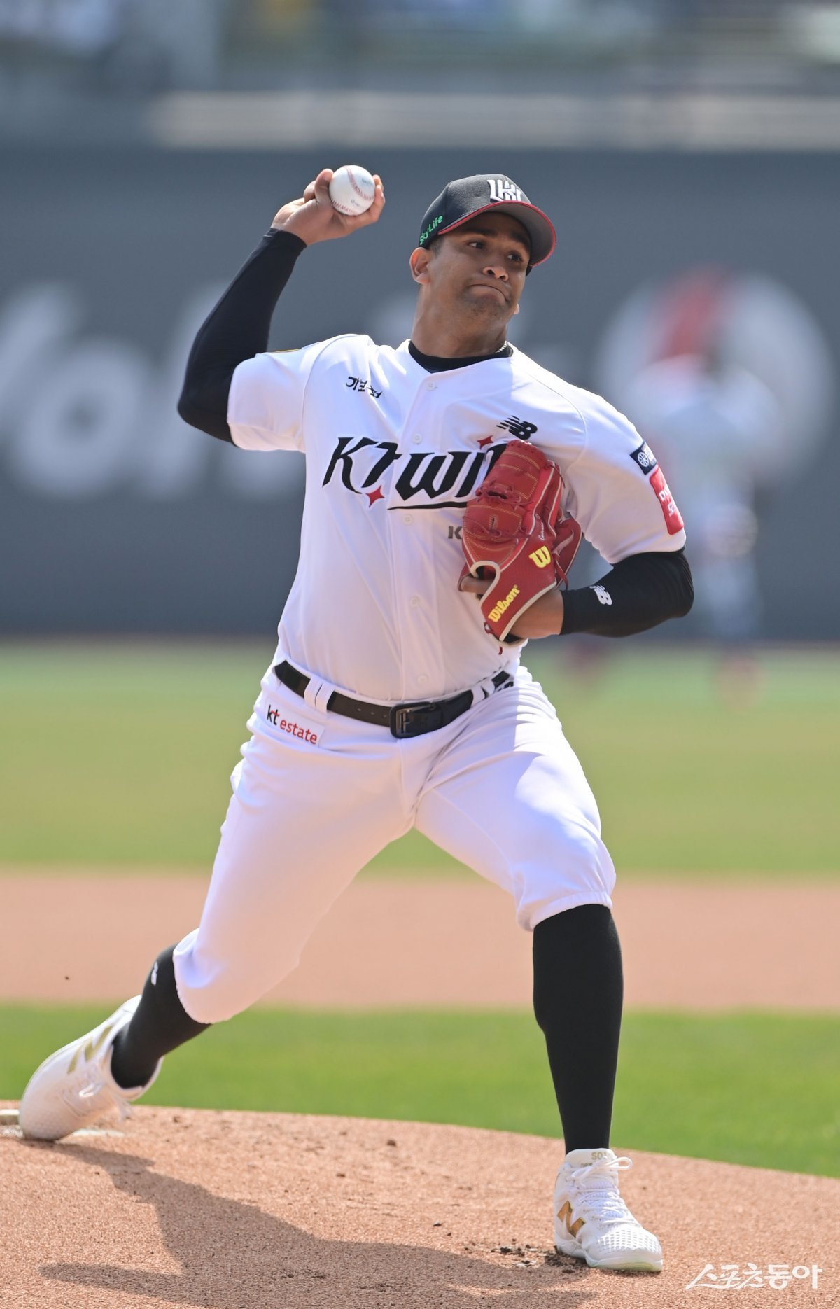 23일 수원KT위즈파크에서 열린 ‘2025 신한 SOL Bank KBO리그’ 한화 이글스와 KT 위즈의 경기에서 KT 선발 투수 쿠에바스가 마운드에 올라 역투하고 있다. 수원 | 주현희 기자 teth1147@donga.com