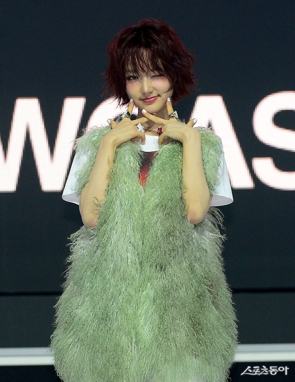 24일 서울 한남동 블루스퀘어에서 걸그룹 키키(KiiiKiii)가 데뷔 미니 앨범 ‘언컷 젬(UNCUT GEM)’을 발매하고 미디어 쇼케이스를 가졌다. 키키 지유가 카메라를 향해 포즈를 취하고 있다. 김민성 기자 marineboy@donga.com