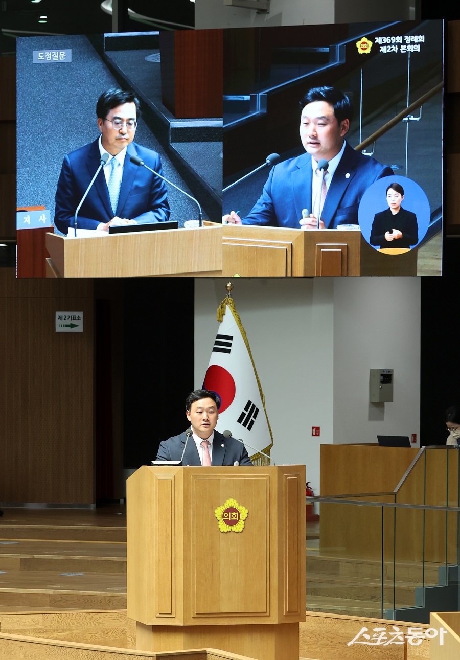 지난 제369회 정례회 제2차 본회의 모습(고준호 의원 도정 질문 모습). 사진제공|경기도의회 고준호 의원