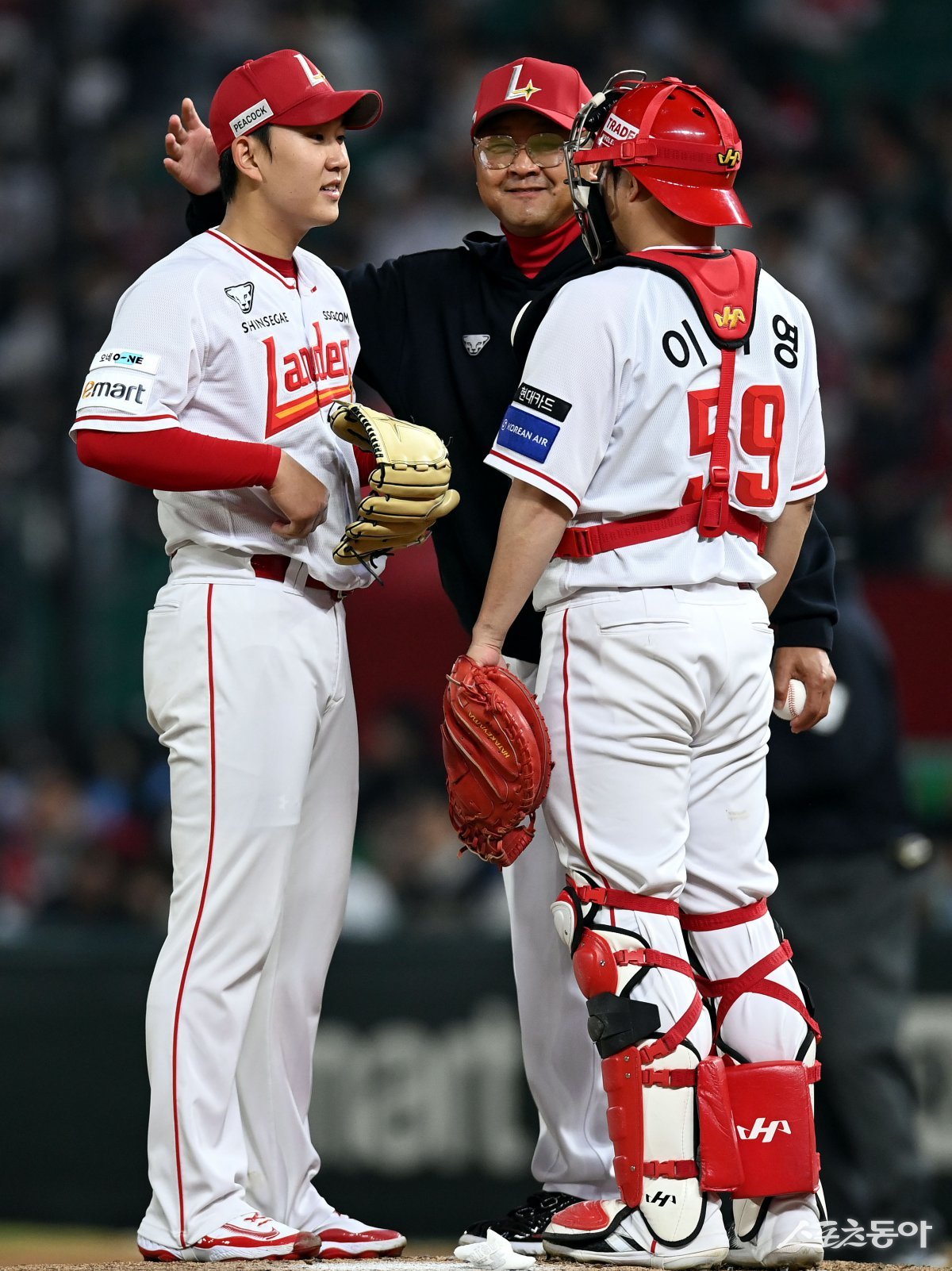 26일 인천 SSG 랜더스필드에서 ‘2025 신한 SOL 뱅크 KBO리그’ SSG 랜더스와 롯데 자이언츠의 경기가 열렸다. 7회초 1사 1루에서 SSG 선발 송영진이 교체되고 있다. 인천 | 김민성 기자 marineboy@donga.com