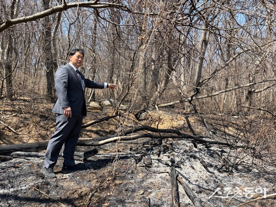 경기도의회 고준호 의원(국민의힘, 파주1)은 지난 28일, 전날 발생한 파주시 조리읍 장곡리 야산 산불 현장을 방문하고, 파주소방서장과의 실무협의를 통해 지역 재난 대응 체계 전반에 대한 점검을 진행했다. 사진제공|고준호 도의원