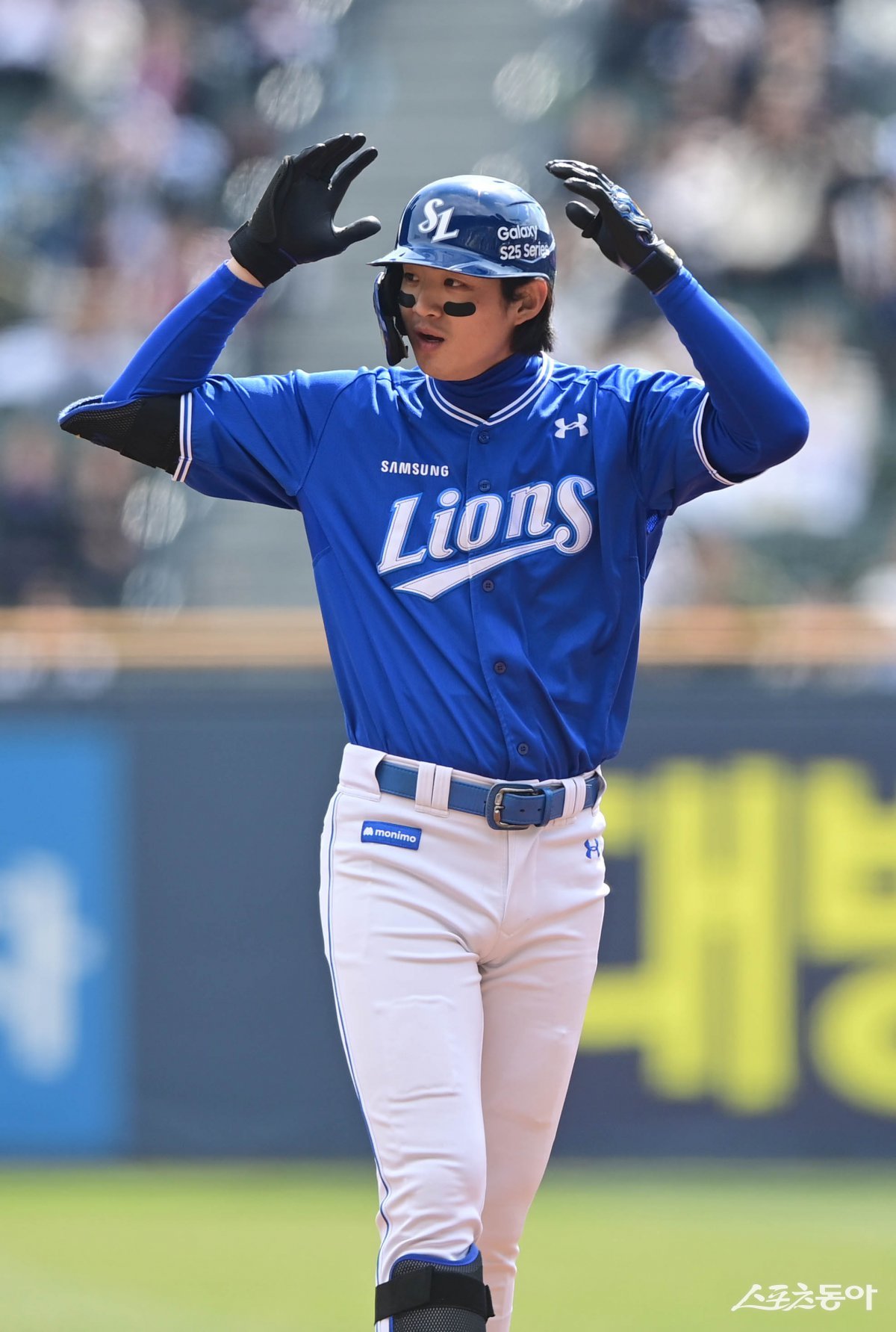 30일 서울 잠실야구장에서 열린 ‘2025 신한 SOL Bank KBO리그’ 삼성 라이온즈와 두산 베어스의 경기에서 1회초 무사 1, 3루 삼성 구자욱이 선제 1타점 좌전 적시타를 친 후 세리머니를 하고 있다. 잠실 | 주현희 기자 teth1147@donga.com