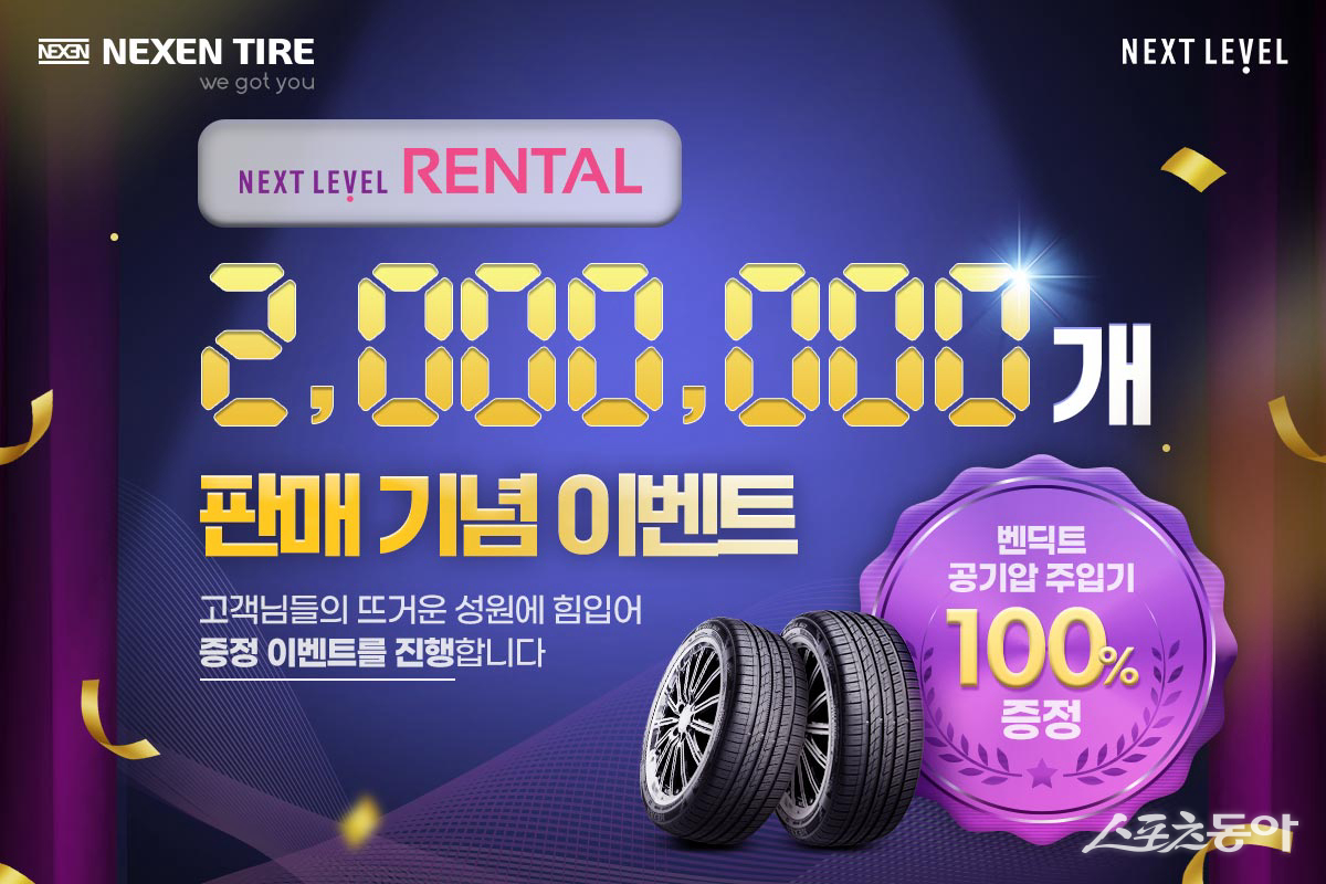 넥센타이어는 이번 200만본 돌파를 기념해 4월 한 달간 감사 프로모션을 진행한다. ‘넥스트레벨’ 채널에서 엔페라 AU7 4본을 구매 또는 렌탈하는 고객에게 무선 공기압 주입기를 증정한다.