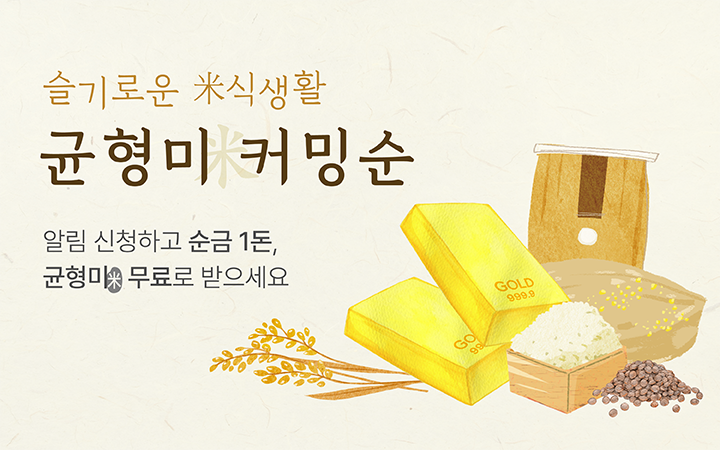 ‘균형미米’ 론칭일에 맞춰 사전 알림을 신청한 고객 중 추첨을 통해 순금 1돈(2명), ‘균형미米’ 제품(60명)을 증정한다.