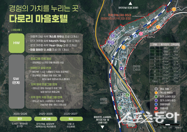 청도군은 이번 사업을 통해 화양읍 다로리 일대의 빈집 8호를 리모델링하여 ‘체류형 마을호텔’로 운영할 계획이다. 또한, 빈집 2호는 마을 주민과 함께 사용할 수 있는 마을 서점, 마을 영화관 등 ‘공동이용시설’로 조성하여 지역 공동체 활성화를 도모할 예정이다. 이를 통해 농촌 빈집의 가치를 재창출하고, 지속 가능한 농촌 공간을 형성하는 데 주력한다.