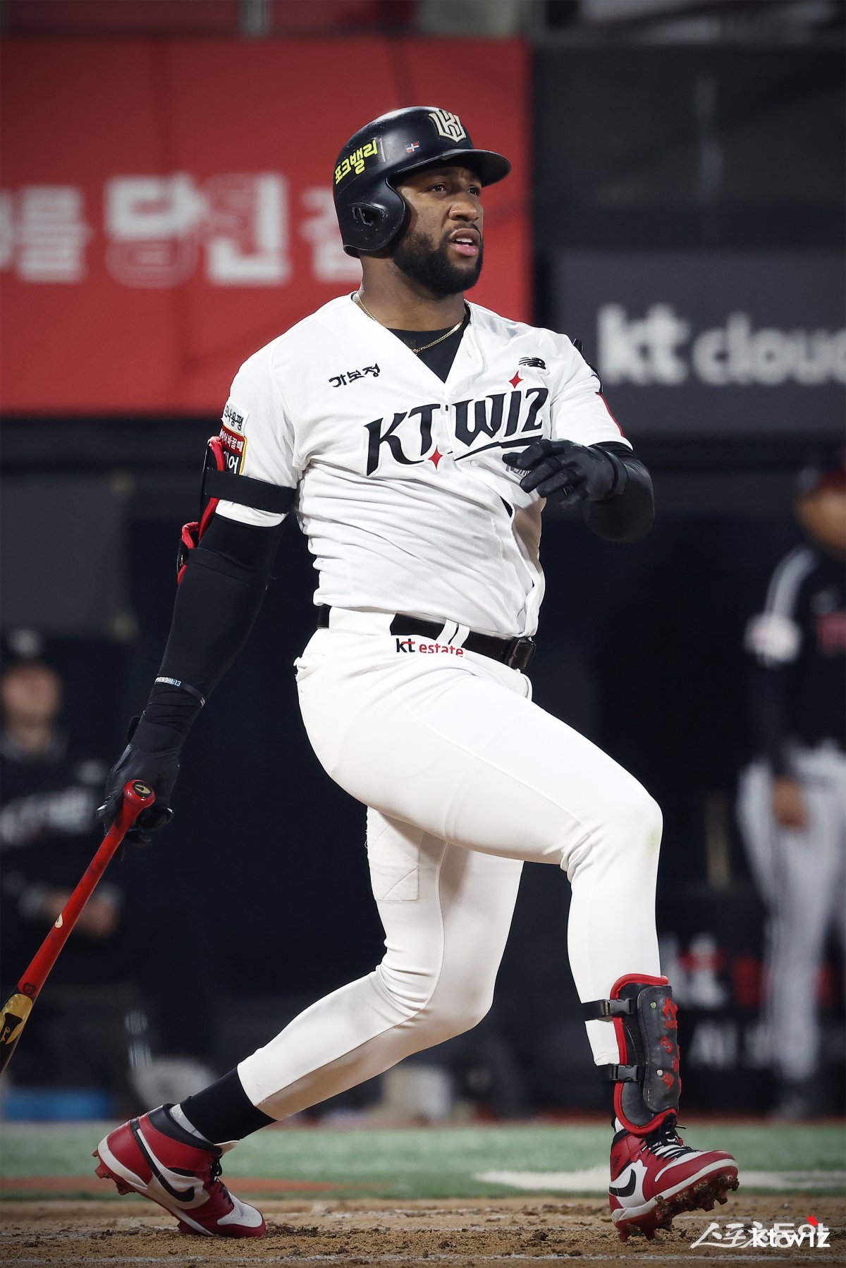 로하스는 1회말에만 2번째 타석에 들어섰다. 2사 2루서 다시 에르난데스를 만난 그는 풀카운트에서 9구째 몸쪽 스위퍼(시속 127㎞)를 잡아당겨 오른쪽 담장을 넘겼다. 로하스의 시즌 마수걸이 홈런으로 KT는 8-1까지 달아났다. 에르난데스는 1회도 마치지 못한 채 마운드에서 내려왔다.