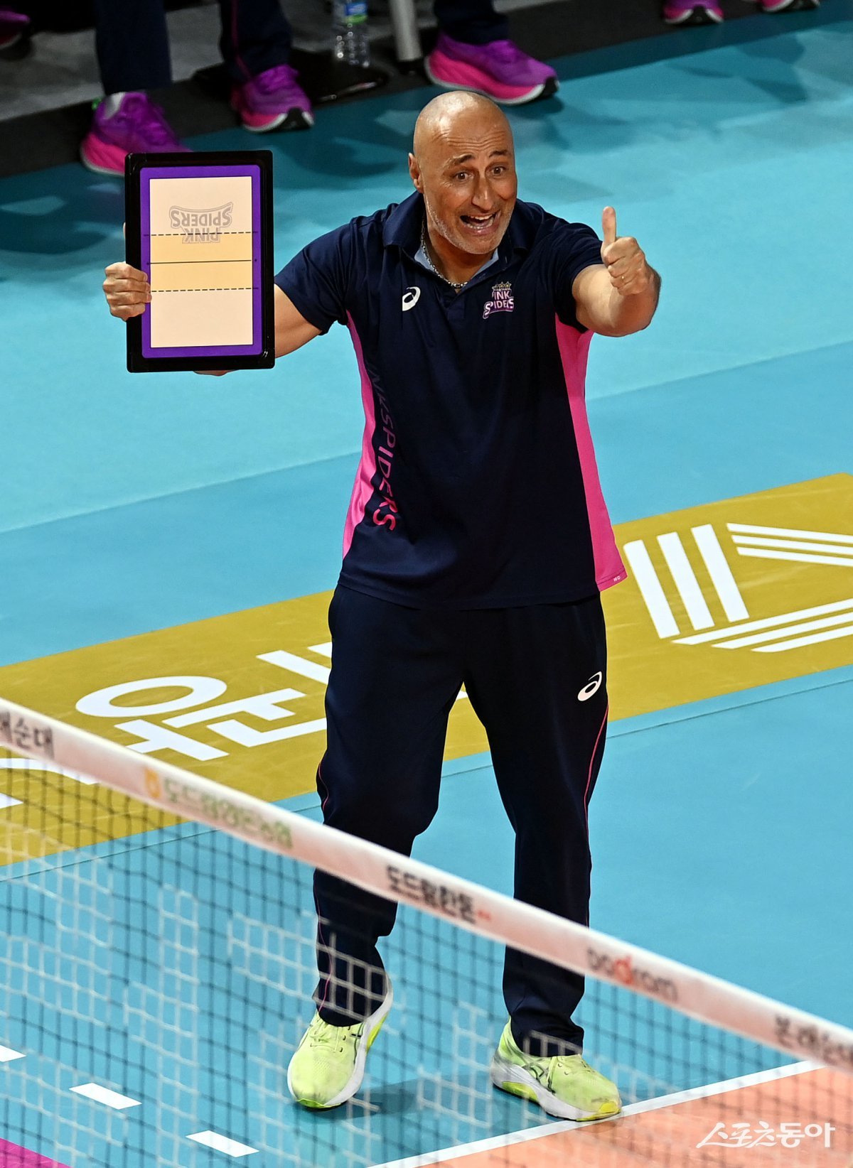 2일 인천 삼산월드체육관에서 ‘도드람 2024-2025 V리그’ 흥국생명과 정관장의 여자부 챔피언 결정전 경기가 열렸다. 흥국생명 아본단자 감독이 선수들의 득점에 환호하고 있다. 인천 | 김민성 기자 marineboy@donga.com
