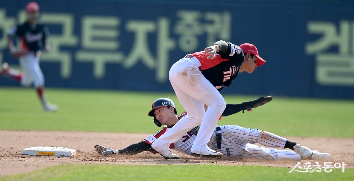 6일 서울 잠실야구장에서 ‘2025 신한은행 SOL뱅크 KBO리그’ KIA 타이거즈와 LG 트윈스 경기가 열렸다. 7회말 1사 1,3루 LG 신민재가 2루 도루를 시도했으나 아웃되고 있다. 잠실|김종원 기자 won@donga.com