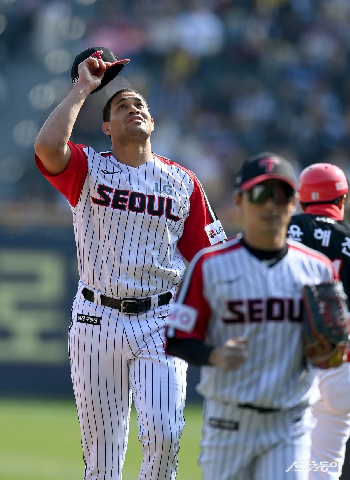 6일 서울 잠실야구장에서 ‘2025 신한은행 SOL뱅크 KBO리그’ KIA 타이거즈와 LG 트윈스 경기가 열렸다. 선발 등판한 LG 치리노스가 7회초 투구를 마치고 더그아웃으로 향하고 있다. 잠실|김종원 기자 won@donga.com