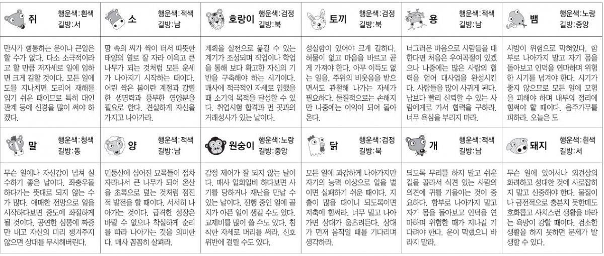 ■ 스포츠동아 오늘의 운세 띠별|운수 좋은 날 (음력: 3월 10일)