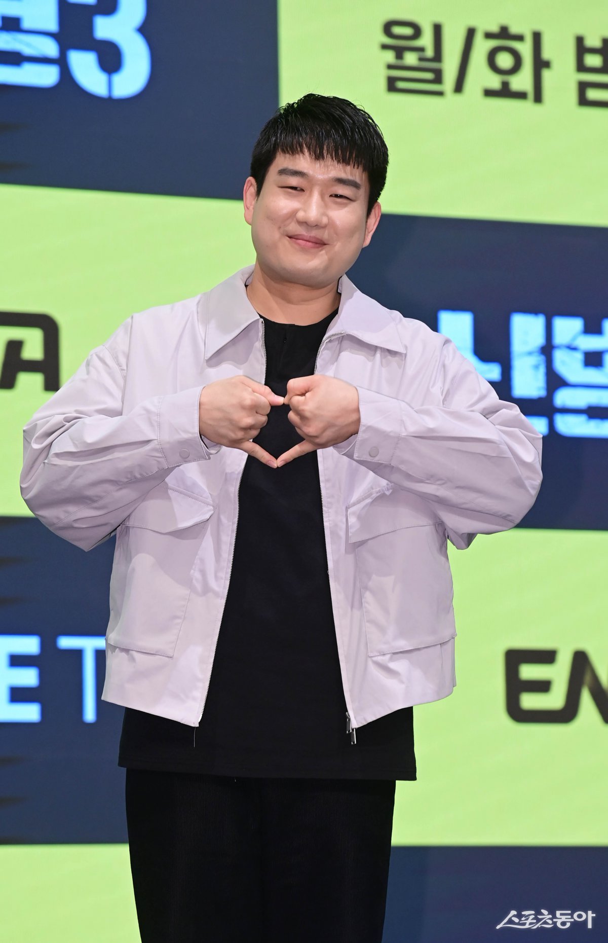 배우 남태우가 7일 서울 구로구 신도림디큐브시티 더세인트에서 열린 지니TV 오리지널 드라마 ‘신병3’ 제작발표회에서 포즈를 취하고 있다. 주현희 기자 teth1147@donga.com
