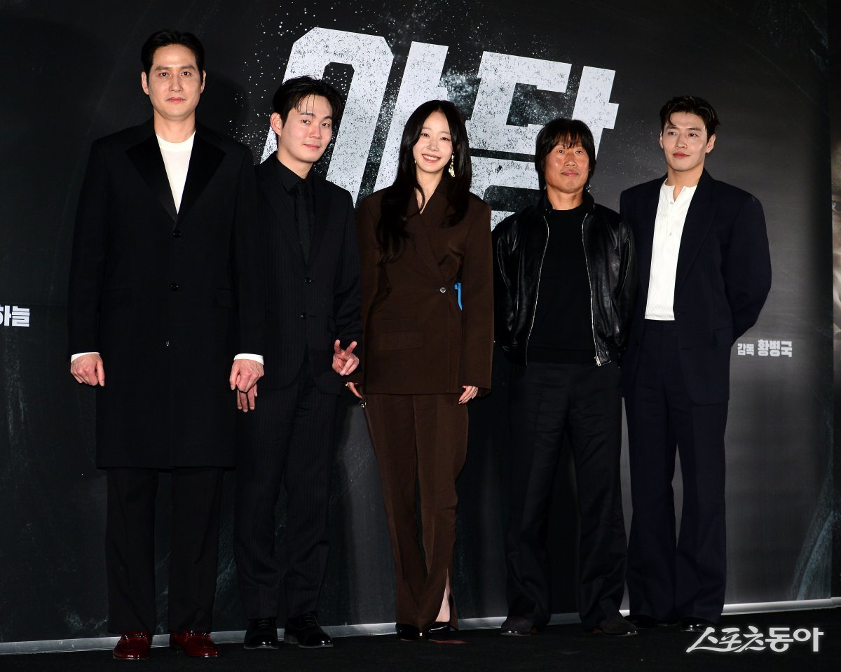 7일 서울 강남구 메가박스 코엑스에서 열린 영화 ‘야당’ 기자간담회에서 배우 박해준, 류경수, 채원빈, 유핸진, 강하늘이 포토타임을 갖고 있다. 김종원 기자 won@donga.com