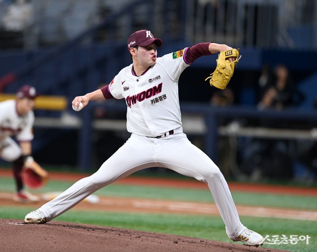 8일 서울 고척스카이돔에서 ‘2025 신한은행 SOL뱅크 KBO리그’ LG 트윈스와 키움 히어로즈 경기가 열렸다. 선발 등판한 키움 윤현이 역투하고 있다. 고척|김종원 기자 won@donga.com