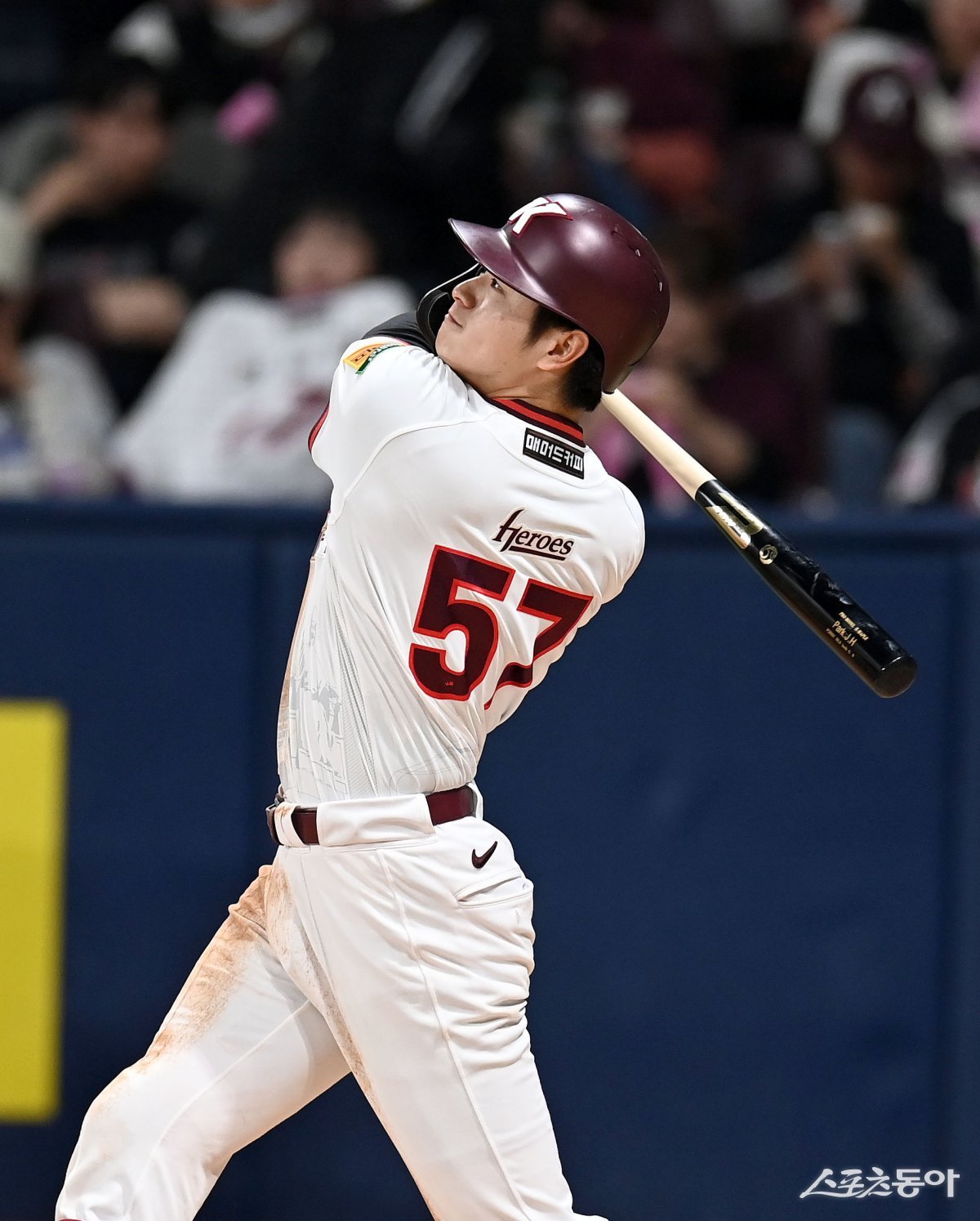 9일 서울 고척스카이돔에서 ‘2025 신한은행 SOL뱅크 KBO리그’ LG 트윈스와 키움 히어로즈 경기가 열렸다. 4회말 무사 키움 박주홍이 우월 솔로 홈런을 날리고 있다. 고척|김종원 기자 won@donga.com