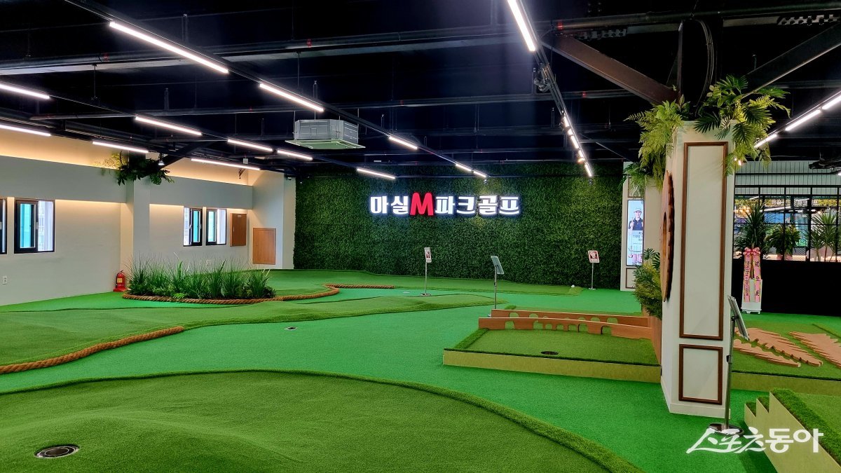 지난 7일 개장한 ‘마실 M파크골프’는 18홀 규모의 실내 미니 파크골프장이다. 실제 파크골프장을 축소한 형태로, 18홀마다 다양한 디자인과 난이도를 갖춰 야외에서 게임을 즐기는 듯한 경험을 선사한다.