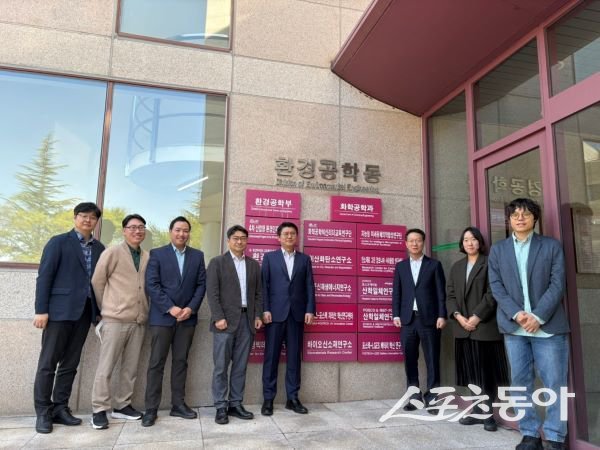 지난 11일 포항시와 코스맥스(COSMAX), 포항공과대학(POSTECH)이 포스텍 환경공학동에서 ‘포항 UIC(UV Innovation Center)’ 현판식을 가진 후 기념촬영을 하고 있는 모습. 사진제공|포항시