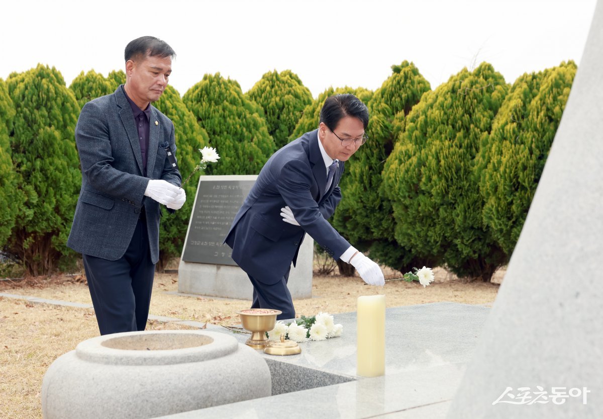 고창군이 14일 오전 공음면 선산마을 위령탑 앞에서 ‘6·25 양민희생자 합동위령제’를 봉행했다. 사진제공=고창군
