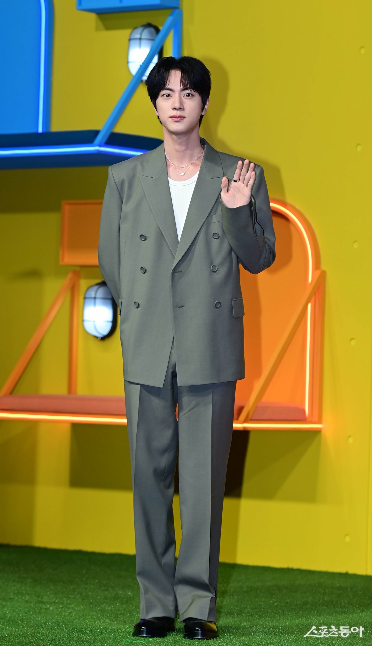 BTS 진이 15일 서울 종로구 JW메리어트동대문스퀘어에서 열린 넷플릭스 리얼리티 프로그램 ‘대환장 기안장’ Part2 ‘절찬리 영업중‘ 기자간담회에서 포즈를 취하고 있다. 주현희 기자 teth1147@donga.com