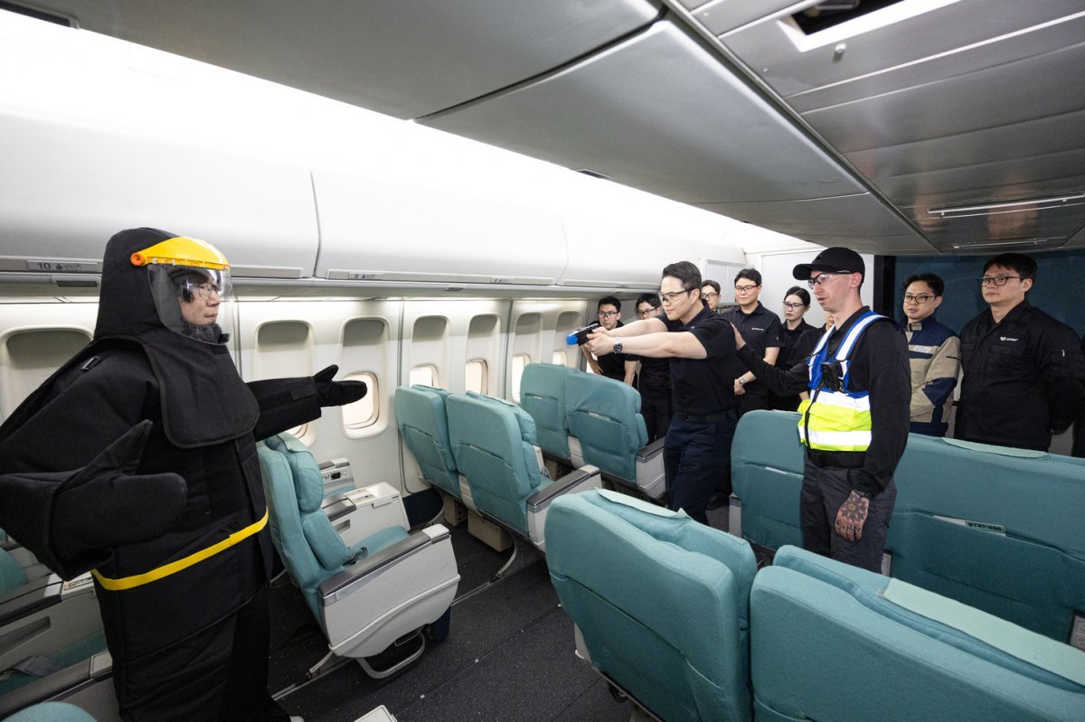 대한항공은 객실안전교관을 대상으로 에어테이저(Air Taser·발사식 전자충격기) 전문 교관 양성 교육을 실시했다. 기내 난동 승객에 보다 단호하고 적극적인 조치를 취해 비행 안전을 유지하기 위해서다.