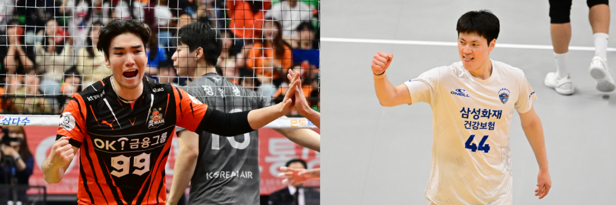 ‘몽골 듀오’ 바야르사이한(왼쪽)과 에디가 최근 ‘2025 V리그 아시아쿼터 드래프트’ 남자부에서 각각 현대캐피탈과 한국전력에 지명됐다. 2023~2024시즌에 이어 2025~2025시즌 V리그 커리어를 다시 이어가게 됐다. 새 팀, 새 포지션에서 이들이 펼칠 활약에 눈길이 쏠린다. 사진제공|KOVO