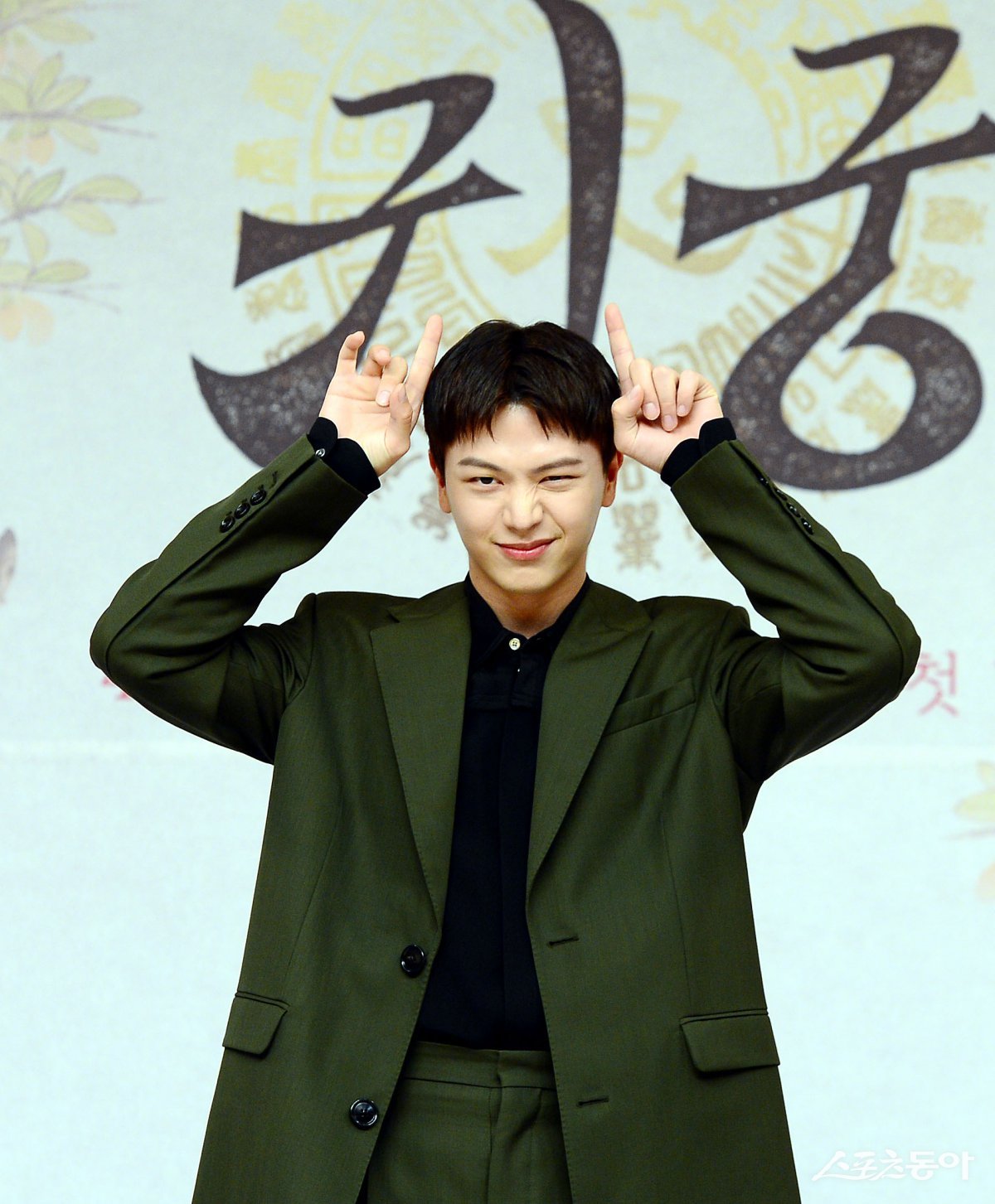 17일 오후 서울 양천구 목동 SBS 사옥에서 열린 SBS 새 금토드라마 ‘귀궁’ 제작발표회에 참석한 육성재가 카메라를 향해 포즈를 취하고 있다. 김민성 기자 marineboy@donga.com