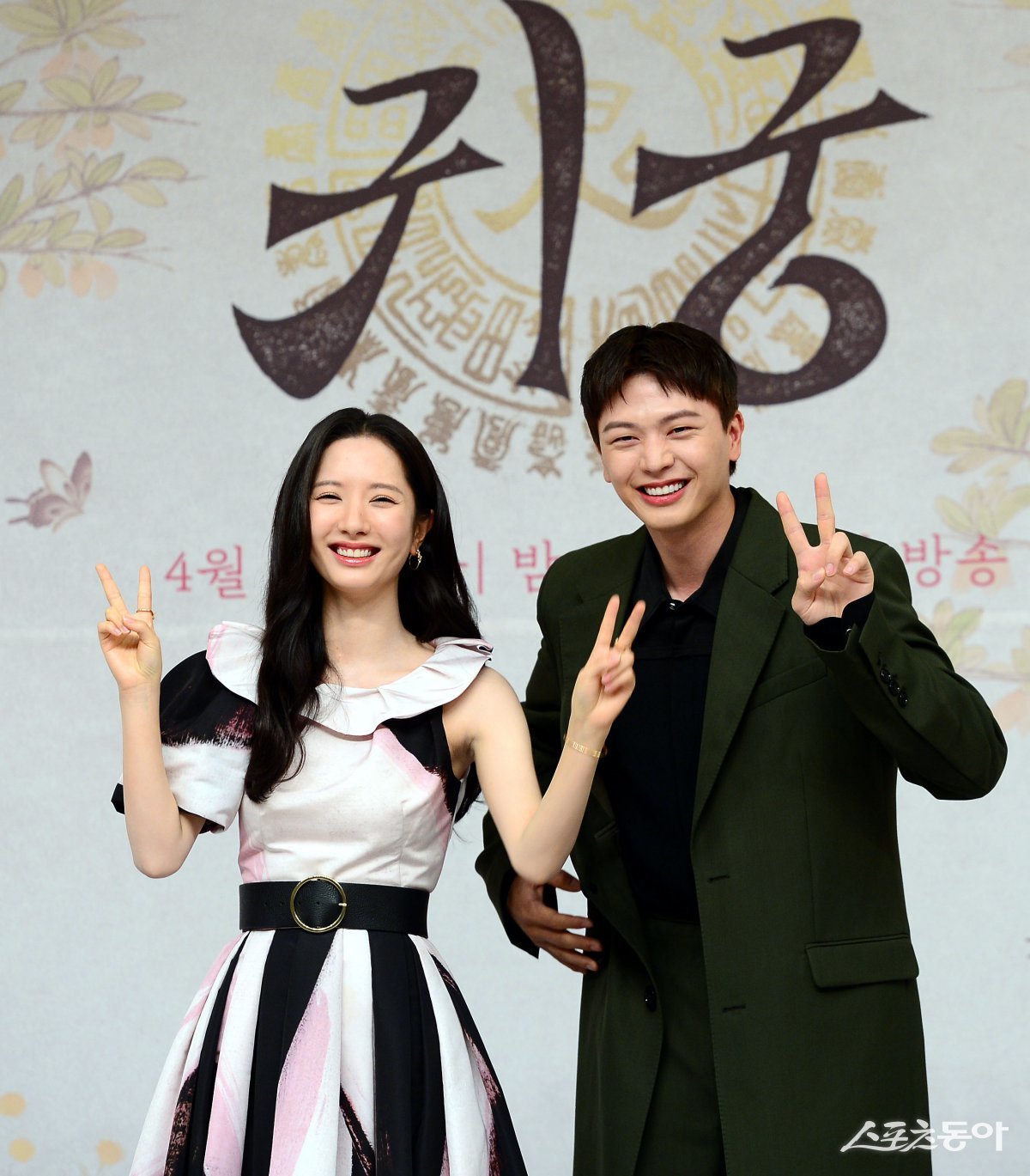 17일 오후 서울 양천구 목동 SBS 사옥에서 열린 SBS 새 금토드라마 ‘귀궁’ 제작발표회에 참석한 김지연과 육성재가 카메라를 향해 포즈를 취하고 있다. 김민성 기자 marineboy@donga.com