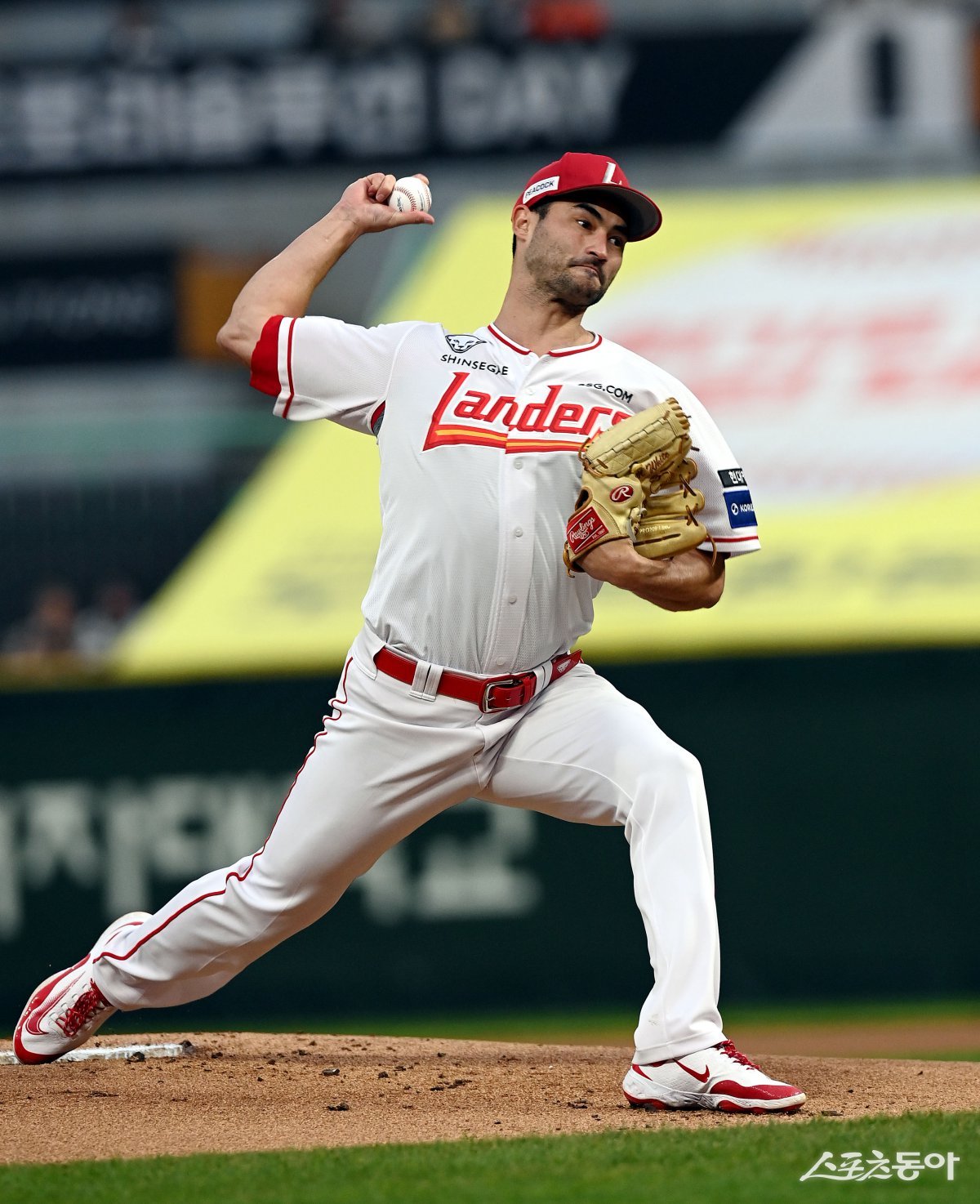 17일 인천 SSG 랜더스필드에서 ‘2025 신한 SOL 뱅크 KBO리그’ SSG 랜더스와 한화 이글스의 경기가 열렸다. SSG 선발투수 화이트가 힘차게 볼을 던지고 있다. 인천 | 김민성 기자 marineboy@donga.com