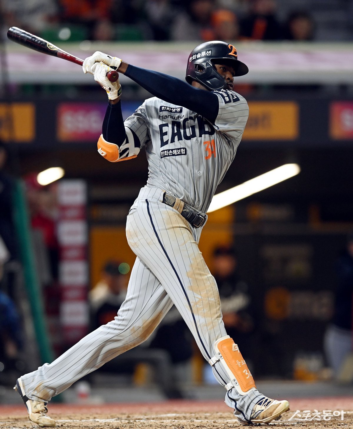 17일 인천 SSG 랜더스필드에서 ‘2025 신한 SOL 뱅크 KBO리그’ SSG 랜더스와 한화 이글스의 경기가 열렸다. 5회초 2사 2, 3루에서 한화 플로리얼리 2타점 역전 적시타를 날리고 있다. 인천 | 김민성 기자 marineboy@donga.com