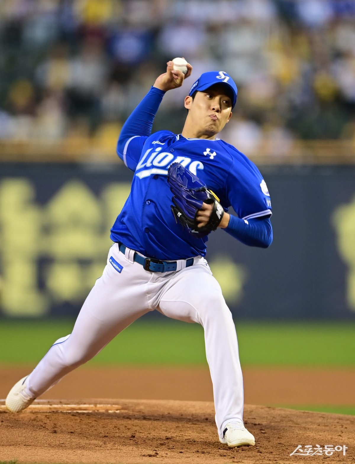 17일 서울 잠실야구장에서 열린 ‘2025 신한 SOL Bank KBO리그’ 삼성 라이온즈와 LG 트윈스의 경기에서 삼성 선발 투수 원태인이 마운드에 올라 역투하고 있다. 잠실 | 주현희 기자 teth1147@donga.com