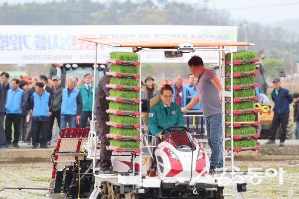 이날 이앙한 벼 품종은 조생종인 ‘해담쌀’로, 타 품종에 비해 고품질에 수량성도 우수하다. 특히 도열병과 잎집무늬마름병 등에 강한 저항성을 지녀 병해충 발생이 적고, 기후 변화로 인한 재해 위험을 줄일 수 있다는 장점이 있다. 이 품종은 8월 중순경 수확이 가능해 조기 출하를 통한 농가 소득 향상도 기대된다.