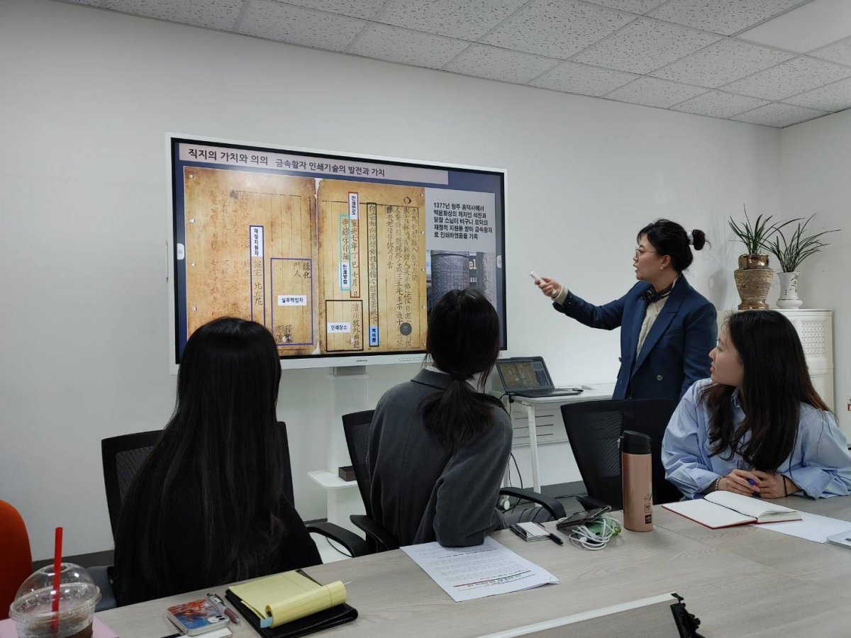 이어 청주고인쇄박물관 학예연구실 홍선희 직지홍보팀장이 박물관의 전반적인 활동과 직지의 역사적 가치에 대해 소개했다. 특히, 직지를 국내외에 알리기 위한 박물관의 다양한 홍보 활동과 그 성과를 공유하며, 박물관의 역할과 기능에 대한 이해를 높였다.