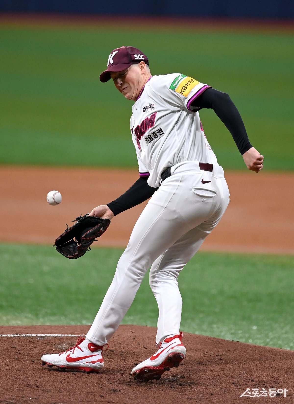 20일 서울 고척스카이돔에서 ‘2025 신한은행 SOL뱅크 KBO리그’ KT 위즈와 키움 히어로즈 경기가 열렸다. 선발 등판한 키움 로젠버그가 2회초 1사 KT 문상철의 타구를 놓치고 있다. 고척|김종원 기자 won@donga.com