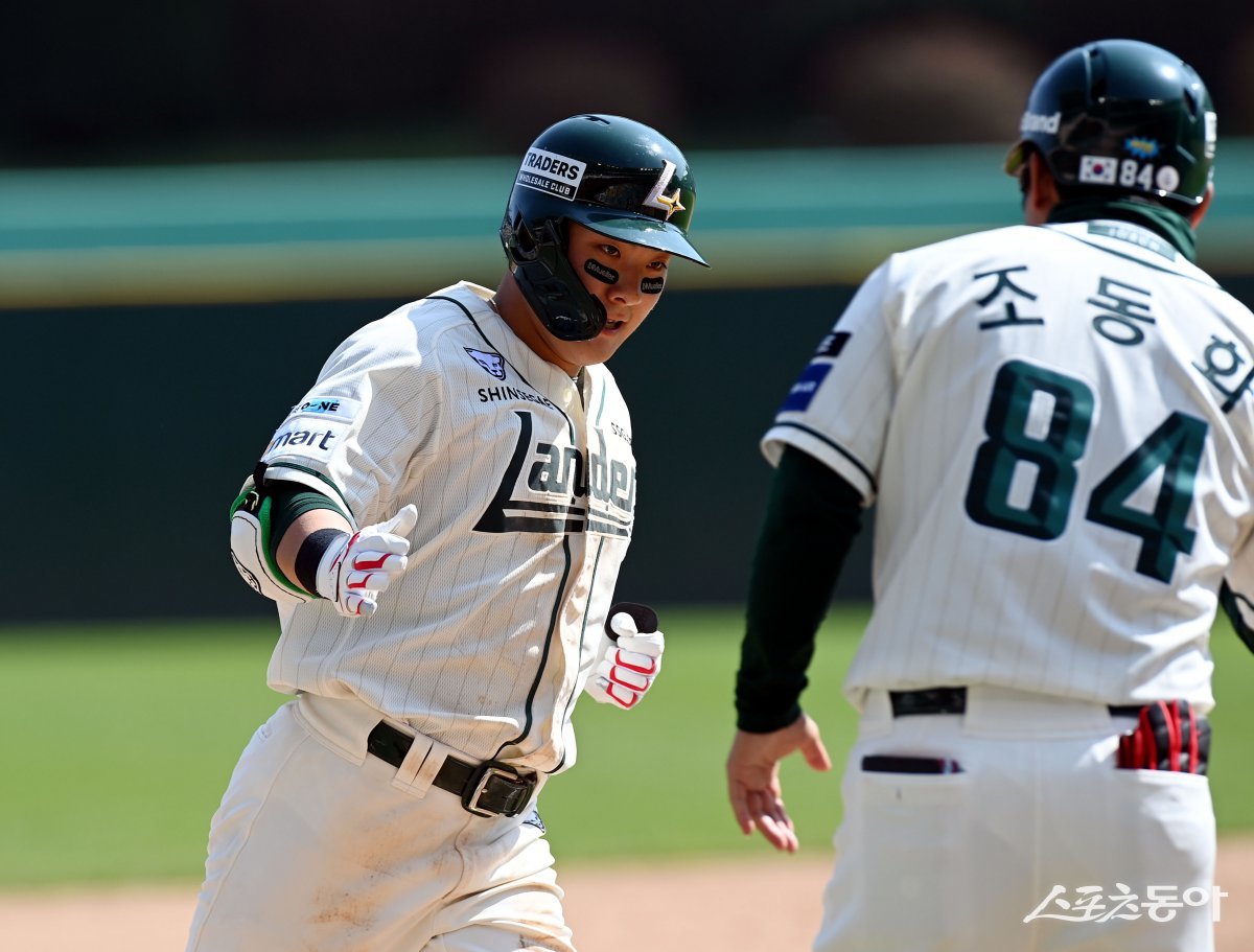 20일 인천 SSG 랜더스필드에서 ‘2025 신한 SOL 뱅크 KBO리그’ SSG 랜더스와 LG 트윈스의 경기가 열렸다. 3회말 2사 2루에서 SSG 최준우가 투런 홈런을 쏘아 올린 후 코치의 환영을 받고 있다. 인천 | 김민성 기자 marineboy@donga.com