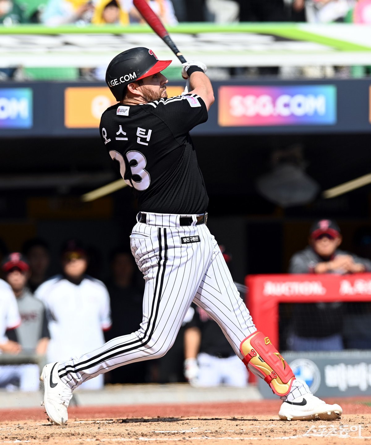 20일 인천 SSG 랜더스필드에서 ‘2025 신한 SOL 뱅크 KBO리그’ SSG 랜더스와 LG 트윈스의 경기가 열렸다. 4회초 무사 1, 3루에서 LG 오스틴이 3점 홈런을 쏘아 올리고 있다. 인천 | 김민성 기자 marineboy@donga.com