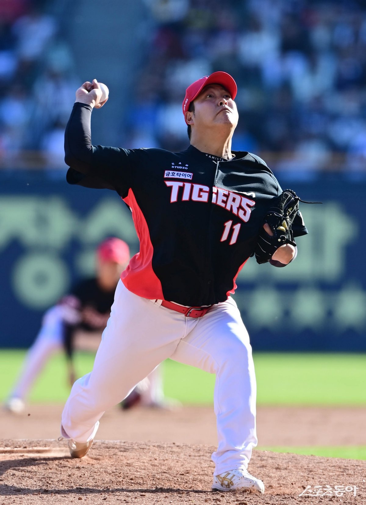 20일 서울 잠실야구장에서 열린 ‘2025 신한 SOL Bank KBO리그’ KIA 타이거즈와 두산 베어스의 경기에서 8회말 KIA 조상우가 교체로 마운드에 올라 역투하고 있다. 잠실 | 주현희 기자 teth1147@donga.com