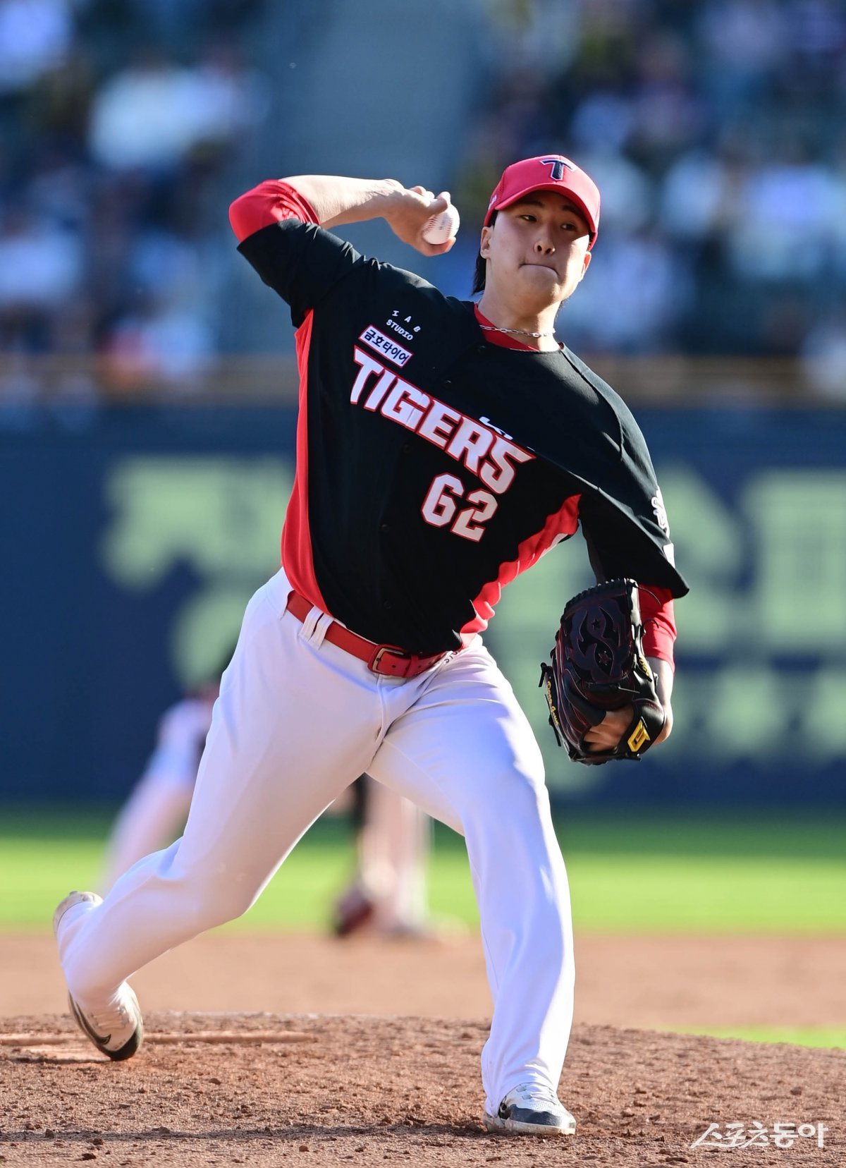 20일 서울 잠실야구장에서 열린 ‘2025 신한 SOL Bank KBO리그’ KIA 타이거즈와 두산 베어스의 경기에서 9회말 KIA 정해영이 교체로 마운드에 올라 역투하고 있다. 잠실 | 주현희 기자 teth1147@donga.com