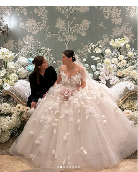 에일리는 이날 아름다운 튤립 플라워 자수가 수놓인 오프숄더 웨딩드레스를 입고, 수많은 하객들의 축복 속에 결혼식을 올렸다. 신지는 단정한 블랙 원피스로 단아하면서도 특유의 친근한 분위기를 전했다.