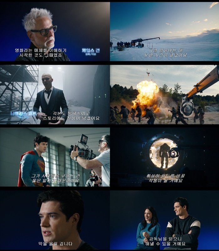 무엇보다 이번 영상에는 놀랍도록 눈부신 설원의 전경, 폭발적인 액션 시퀀스, 코믹스에서 바로 튀어나온 듯한 상징적인 세트들이 공개, 역대급 시네마틱 경험을 예고하는 장대한 비주얼들이 시선을 집중시킨다. 여기에 슈퍼맨과 함께 극의 긴장감을 고조시킬 또 다른 캐릭터들의 향연도 놀라움을 더했다. 가이 가드너 역의 나단 필리온, 릭 플래그 시니어 역의 프랭크 그릴로, 미스터 테리픽 역의 에디 가테지 등 팬들을 열광시킬 또 다른 주역들은 “이 영화는 확실히 판도를 바꿀 작품이 될 거다. 이 작품으로 미래가 열리게 된다”라며 자신감을 드러냈다.
