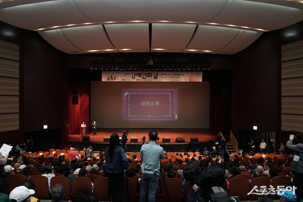 지난해 4월 시청 온누리에서 열린 장애인의 날 기념식 때 내빈 소개 모습. 사진제공ㅣ성남시
