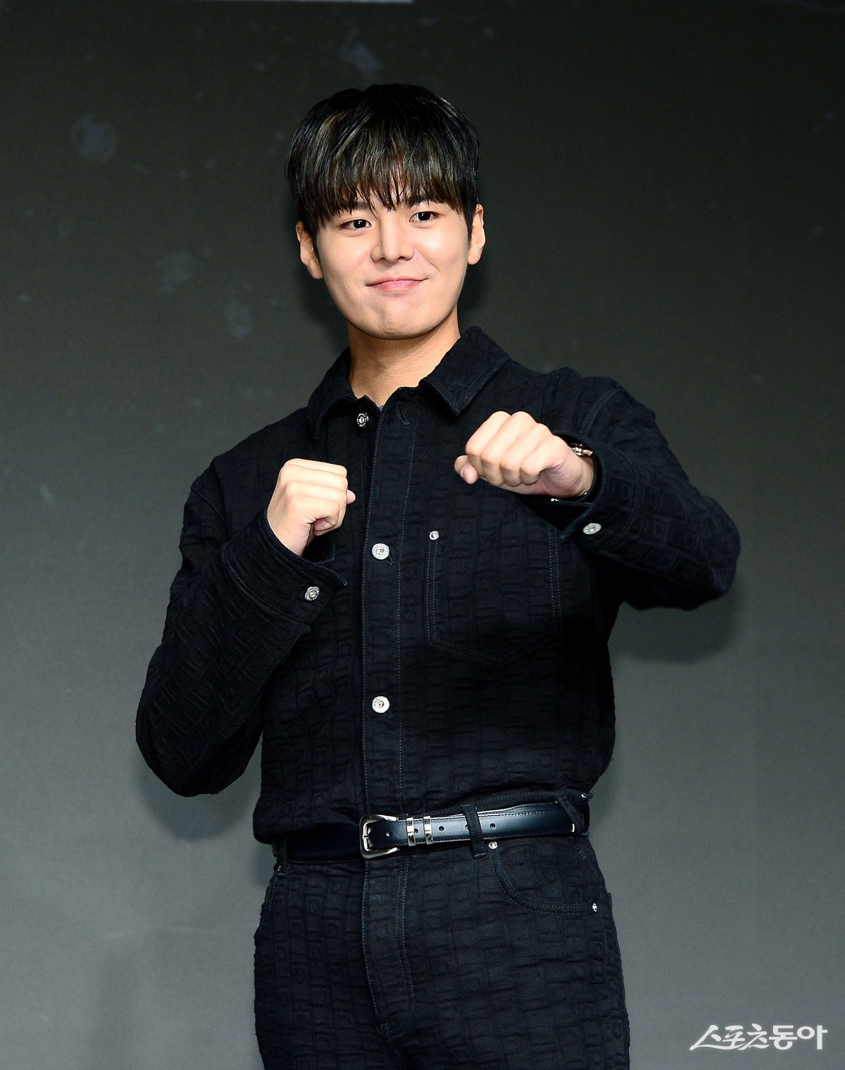 21일 서울 마포구 호텔 나루 엠갤러리에서 열린 넷플릭스 시리즈 ‘약한영웅 Class 2’ 제작발표회에 참석한 려운이 카메라를 향해 포즈를 취하고 있다. 김민성 기자 marineboy@donga.com