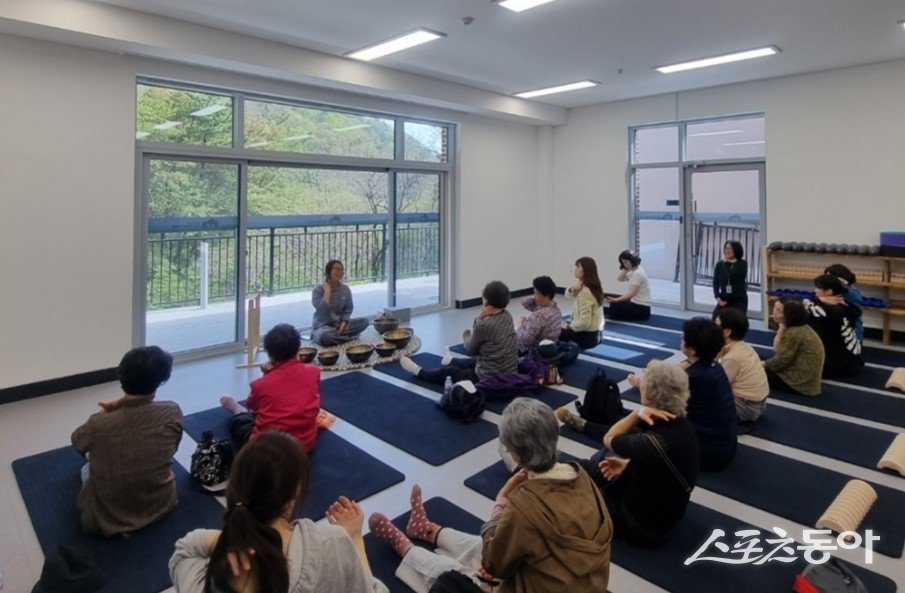이번 프로그램은 ▲숲속 가족 스트레칭 ▲하늘 바라보기 체험 ▲싱잉볼 명상 ▲허브 오일 마사지 ▲차담 등 다양한 활동으로 진행됐다.