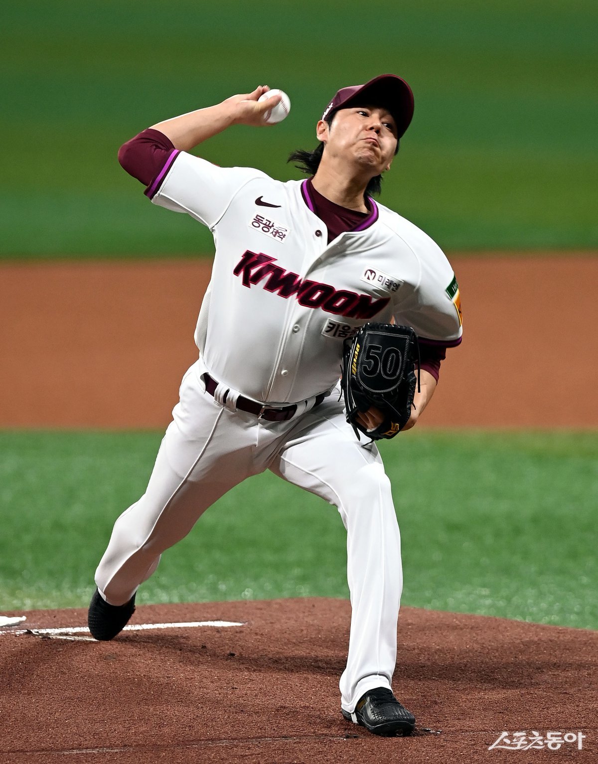 22일 서울 고척스카이돔에서 ‘2025 신한 SOL 뱅크 KBO리그’ 키움 히어로즈와 두산 베어스의 경기가 열렸다. 키움 선발투수 하영민이 힘차게 볼을 던지고 있다. 고척 | 김민성 기자 marineboy@donga.com