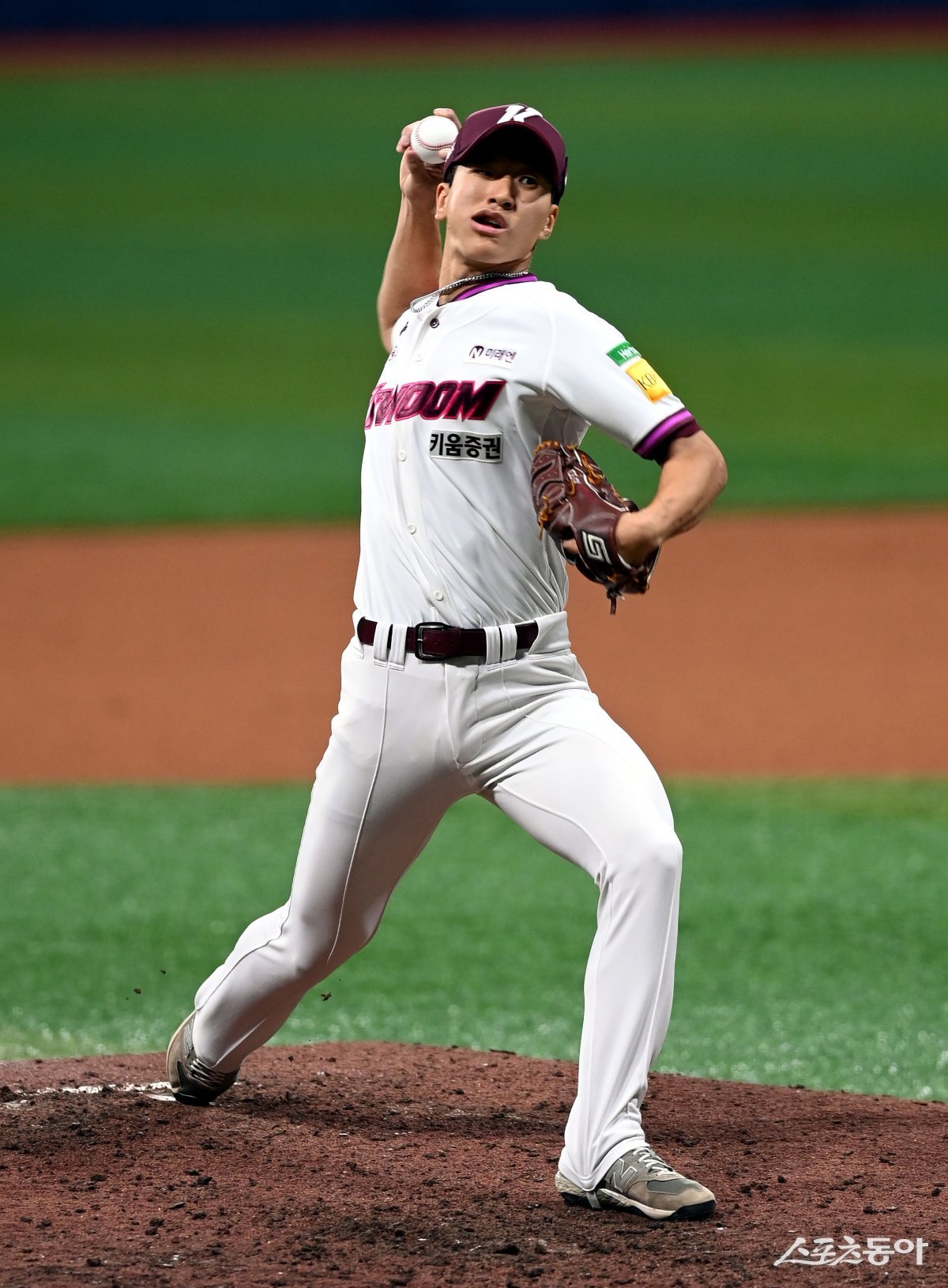22일 서울 고척스카이돔에서 ‘2025 신한 SOL 뱅크 KBO리그’ 키움 히어로즈와 두산 베어스의 경기가 열렸다. 9회초 1사에서 키움 마무리 주승우가 구원 등판해 볼을 던지고 있다. 고척 | 김민성 기자 marineboy@donga.com