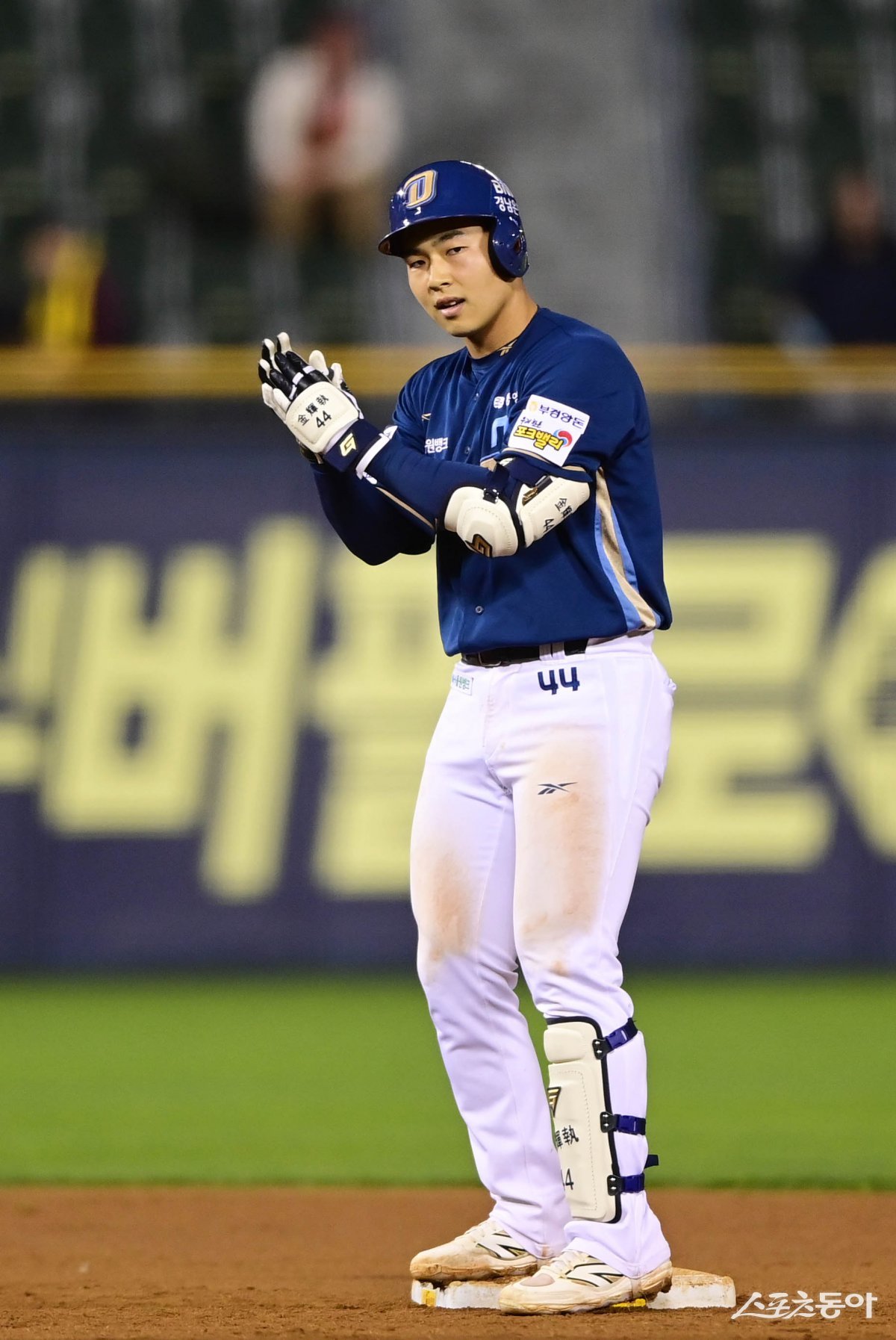 22일 서울 잠실야구장에서 열린 ‘2025 신한 SOL Bank KBO리그’ NC 다이노스와 LG 트윈스의 경기에서 연장 10회초 1사 2루 NC 김휘집이 1타점 중전 2루타를 친 후 세리머니를 하고 있다. 잠실 | 주현희 기자 teth1147@donga.com